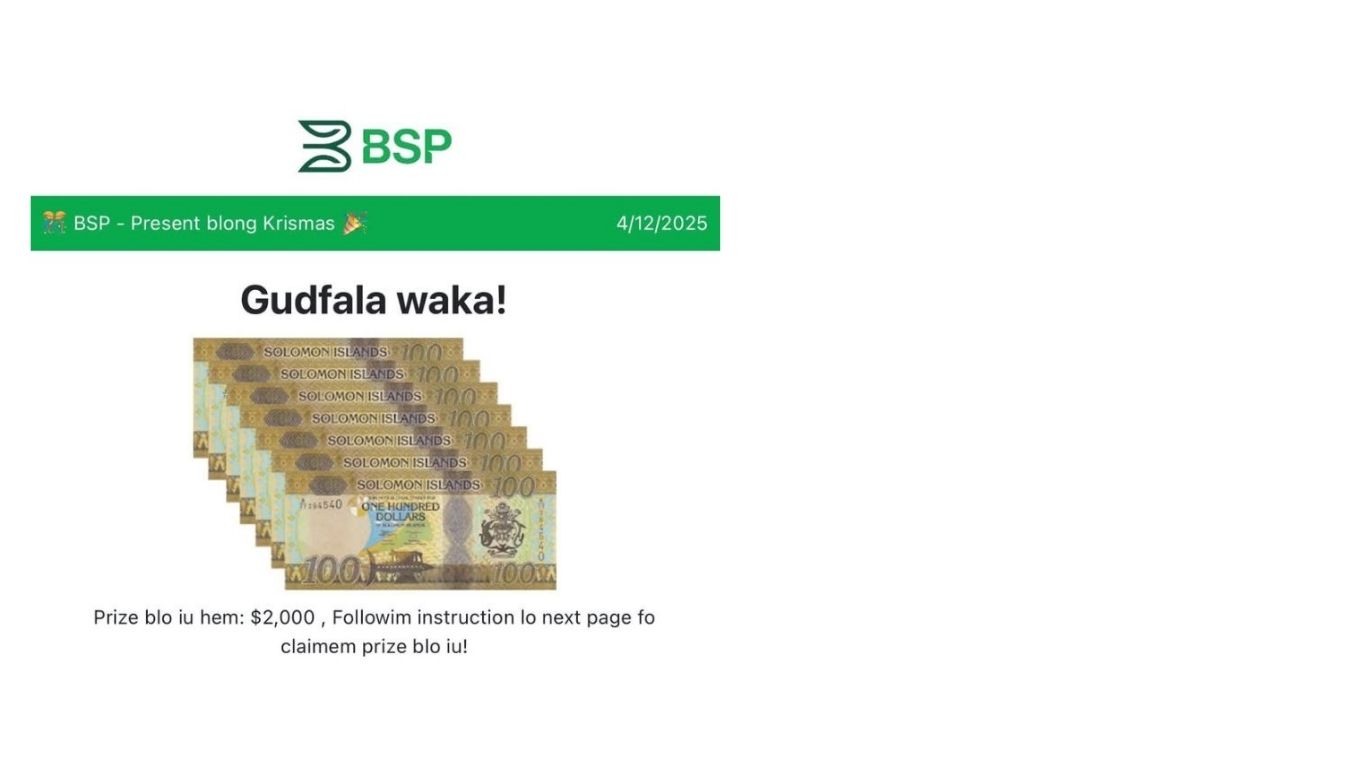 BSP hem advisem evri kastoma for stap lukaut. Sapos iu faendem eni promotion wea usim BSP Logo: